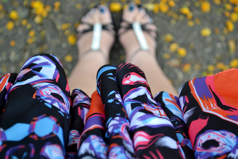 Para compor o look optei por combiná-lo com uma sandália delicada e um óculos com detalhes brancos na armação. A ideia era de um look simples e charmoso, sem muitos detalhes uma vez que a estampa do vestido é bastante chamativa pela variação de cores.